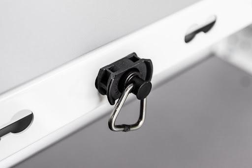 Naast de spanriem kan ook een haakje niet ontbreken in jouw bestelwagen. Het haakje dient namelijk om de spanriem door te steken. Ons rail systeem laat toe de haakjes te verplaatsen zodat je de spanriem steeds kan aanpassen op maat van jouw lading.